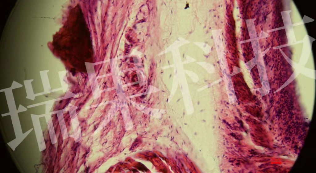 HE染色:蘇木精 - 伊紅染色法 ( hematoxylin-eosin staining ) ,簡(jiǎn)稱HE染色法 ,石蠟切片技術(shù)里常用的染色法之一 。蘇木精染液為堿性 ,主要使細(xì)胞核內(nèi)的染色質(zhì)與胞質(zhì)內(nèi)的核酸著紫藍(lán)色 ;伊紅為酸性染料 ,主要使細(xì)